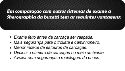 Pioneira em tecnologia no ramo de recapagem a Buzetti Pneus trouxe a primeira máquina importada da Alemanha que está em uso no Brasil na área de recapagem (na unidade de Cuiabá).